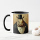 Put your best hoof forward with a hot beverage sipped from this mug with two rhino gentlemen dressed in tuxedos and top hats.