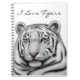 Original fine art design of a white Bengal tiger by artist Carolyn McFann printed on a quality and customizable notebook for big cat fans.