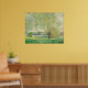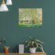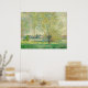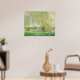 This beautiful painting by Claude Monet features a scene loosely painted with a color palette is almost completely dominated by cool tones of spring, sage, celery, and kelly green, and steel and sea blue.