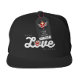 the WORK LOVE BALANCE red script lettering trucker Snap Back Hat