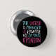 The button was just as expected. My mother's smile was captured so beautifully. The size was just right and the colors we chose were bright. The print was nice and clear. A person ordering should just make sure the wording is lined up in the center before submitting