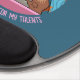 A gel mouse pad or mouse mat for an underappreciated genius, featuring a groundhog singing into the soap while stood in a pink bathtub, surrounded by bubbles and a stunned rubber duck. With tasteful starfish and shell shower curtain. The editable text reads "THE WORLD IS NOT READY FOR MY TALENTS", change to another caption if preferred, by clicking "Personalise this template".
