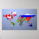 The World Map With Their Flags Poster