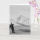 This is a vintage photograph of the Wright brothers performing a test flight.