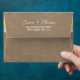 The coral sand dollar beach wedding collection is a stunning design featuring a lovely rustic burlap effect background with a romantic vintage white lace effect trim finished with a stunning sand dollar and yellow ribbon. These envelopes can be personalized for your special occasion and would be the perfect matching envelopes for your wedding announcements, bridal shower invitations, engagement party invites, birthday party invites and much, much more. Matching wedding items can be found in the collection.