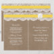The yellow sand dollar beach wedding collection is a stunning design featuring a lovely rustic burlap effect background with a romantic vintage white lace effect trim finished with a stunning sand dollar and yellow ribbon.