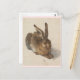 Fine art from the 16th century by Albrecht Durer. Young rabbit with long ears and fawn colors sits on a pale pink background.