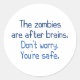 Great gift for zombie lovers and a way to tell someone they are stupid! Reads " The zombies are after brains. Don't worry. You're safe."