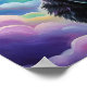 This whimsical poster features a tabby cat sitting amongst a dreamy fantasy cloudscape, and a beautiful magic night sky full of stars. Finished in a vibrant multicolor oil paint print.