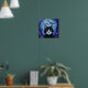 This whimsical poster features a tuxedo cat surrounded by a serene blue white purple night sky, with the message The Cats Meow right above him. Finished in a oil paint print.