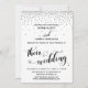 Their Wedding Hearts Script Silver Confetti Invitation