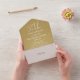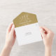 All in one 50th golden wedding anniversary invitation featuring 2 special photos and stylish typography on a gold background. The invitation includes a perforated RSVP card that can be individually addressed or left blank for you to handwrite your guest's address details and chic monogram initials within a floral garland on a gold background. Designed by Thisisnotme©