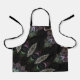 Great color and even though I ordered the kid size, it covers well enough to use during the holidays. I am not a big woman and prefer a shorter apron. I stand 5"6" and the length of the garment goes to mid-thigh. The tie straps fit well at my waist and even though there is no neck strap adjustment, the opening is plenty big enough. I am happy with the size and fit. I am sharing my apron with my 10 year old grandson, too! The color is vibrant and looks good, as shown on the website. The stitching looks strong and reinforced. Photographed is front side and back side of the apron, reinforced straps and coloring. My phone camera may not be the best at showing the details.