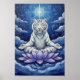 Imagine a serene scene where a majestic white tiger is sitting in the middle of a beautiful lotus flower, surrounded by a blue sky. The tiger appears to be meditating, with its eyes closed, as it embraces the peaceful atmosphere. The lotus flower, a symbol of purity and enlightenment, complements the tiger's graceful posture, creating an awe-inspiring image that captures the essence of harmony between nature and spirituality.