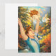 A joyful scene unfolds as a smiling man lifts a delighted baby against a backdrop of a vibrant autumn forest with a cascading stream. Sunlight filters through the trees, highlighting the warmth and happiness of the moment. Digital Art