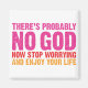 There is probably no god, so stop worrying and enjoy your life. pink red and yellow letters. This is similar to the atheist bus campaign popularized in England and the United States by Richard Dawkins. Let everyone know, you are an atheist, and you are not ashamed.