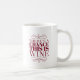 Just because it's a coffee mug, that doesn't mean it has to hold coffee. Burgundy text framed by elegant flourishes on a white background announces the possibility that this mug just might contain wine.