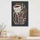 There's always room for coffee typography illustration. Colorful lettering typography poster with a quote, a cup, hearts, flowers and leaves. Vintage old beige calligraphy print on a dark green background.