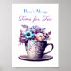 Elegant antique teacup full of pretty vintage colored flowers. Pink, purple and blue. ai art generativecontent