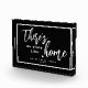 This photo block features a black background with white text that reads: "There's no place like home" along with a small heart and your custom name, established date or other text.
