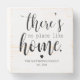 this wood box frame features the text "There's no place like home" along with a small heart and your custom name, established date or other text.