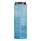 A termal tumbles featuring a serene blue ocean design, where the light of the sun creates shimmering reflections on the water. The sea appears calm, with varying shades of blue, from light turquoise to deeper azure, capturing the peaceful beauty of the ocean under the bright sunlight. The sun's rays dance across the surface, adding a sparkling, almost magical effect to the scene, enhancing the feeling of a warm, sunny day by the sea.