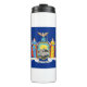 Elevate your beverage experience with our thermal tumbler featuring the flag of New York State!