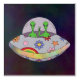 In this fun sci-fi illustration by Richard H. Fay, groovy green aliens ride in a flying saucer decorated with flowers, hearts, a star, and a rainbow.