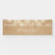 A fun personalized engagement party banner featuring pretty string lights on a rustic kraft background. Designed by Thisisnotme©
