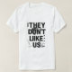 Elevate your wardrobe with the "They Don’t Like Us" graphic tee, a bold statement piece designed for those who embrace individuality and confidence. Crafted with premium-quality fabric for all-day comfort, this unisex t-shirt features a sleek, modern typography design that exudes urban edge. Whether paired with jeans for a casual look or layered for a street-style aesthetic, this versatile tee is perfect for those who set trends rather than follow them. Stand out, stay bold, and make your statement.