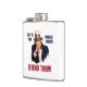 Well made flask, a little better than I had expected. Flask came in clear plastic box which gave it a nice presentation when I took it out of the zazzle packaging. Image is not printed on flask but on sticker. Don't know how this will hold up I haven't used it yet. This would make a Great gift! I plan to purchase more for friends! Cheers. I thought a little brighter than computer. Very crisp, writing wasn't