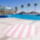 Faboulous striped round beach towel in pastel pink. Vertical stripes pattern design in beautiful pastel colors. Modern striped pattern home decor.