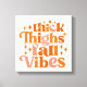 This vibrant and playful fall design features the fun and confident phrase "Thick Thighs Fall Vibes" in a bold, retro-inspired font. The text is arranged in a dynamic, stacked layout, with each word filled in warm autumn hues, including shades of orange, peach, and soft pink. The surrounding star-like sparkles add a touch of whimsy and shine, enhancing the festive and cozy feel of the design. The typography is both bold and curvaceous, giving it a lively, vintage appeal that perfectly captures the essence of fall.