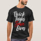 My 11 yo wore adult XL (5’7” 165#). The 8yo is small framed. She wore adult small and tied it in the back. Grandma wore adult large with long sleeve shirt underneath. Tall girl adult medium. Dark haired male adult large. Good quality dark Heather gray, Gildan brand shirt. -it was next up from basic choice and cost about $20 per shirt. Not too thick or thin. Washed and dried well, no major shrinkage. Not see-through. Can wear a bra under it fine. Screen print is just as shown and well done, front and back.