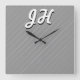 Thin Black & White Stripes | Retro-Styled Initials Square Wall Clock