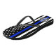 Thin blue line style American flag. A Black white and cobalt blue American flag symbolic of law-enforcement. This is featured on a pair of custom monogram sandals.