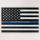 This police thin blue line puzzle features a black and white police thin blue line American flag Personalize by replacing sample name with your own officer's name. Makes a great gift.