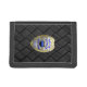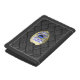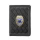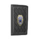 Police officer badge with a "tuck and roll" leather look. Celebrate the honor of the men and women who protect and serve with this gorgeous Thin Blue Line badge design. Any law enforcement officer would be proud to own one.