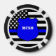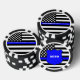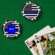 These poker chips are 100% customizable. You can enter your own personal text or leave blank for no text. To adjust the size, color, or style of the text click the big blue "Edit Using Design Tool" button. From the Design Tool, you can change the black, white, and blue in this design to any colors you prefer. You can also change the size & positioning of the background flag graphic and shield. Customized to your needs, these poker chips make a great economical challenge coin. Back the Blue!