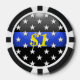 Our beautiful Thin Blue Line poker chips can be customized with or without the chip value. Using the customize tool you can also change the chip value to suit your level of card game play and/or the chip value color, or you can remove the chip value entirely. All of our poker chips feature an exclusive, original art design not found anywhere else. Be sure to visit our custom playing cards too.