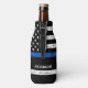 Police Academy Graduation Thin Blue Line Bottle Cooler - USA American flag design in Police Flag colors. This personalized police cooler for police academy graduation party favors, law enforcement graduation gifts.