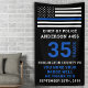Thin Blue Line Police Retirement Banner - USA American flag design in Police Flag colors . This personalized police party banner is perfect to celebrate your retired law enforcement officer, police retirement party banner , law enforcement retirement party. Personalize these police retirement banner with police officers rank, name, badge number, years of service and retirement date, and personal message.