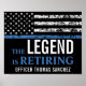 This design features a police force flag with black and white stripes, and a thin blue line stripe as well. "The Legend is Retiring" text sits above the customizable name of the retiring law enforcement officer, sheriff, captain, or chief. Celebrate this milestone in style!