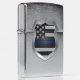 Show your support for Law Enforcement with this Thin Blue Line flag, shield style logo zippo lighter