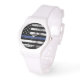 I only have one complaint. I ordered the watch with clear case and strap, and what was sent was white case and strap. I'm going to keep it because 1) it looks very nice in white, and 2) it would take too long to get a replacement made and sent in time for my occasion. Aside from the mix up with the color, the watch does look very good in white. The purple dial is actually sparkly which did not show in the online images. That was a nice surprise. If you like Swatch watches this is very similar to those. It's 33.6mm in diameter, 10.5mm thick, and 40.6mm lug to lug. Stainless steel case back says 3ATM/30m WR, so no swimming or showering or submerging this one. If you like Woodstock, this is a great choice.