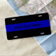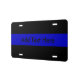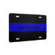 Thin Blue Line license plate. Customize and personalize the text, as desired. The Thin Blue Line is a symbol used by law enforcement in the United States and Canada to commemorate fallen officers. Each stripe on the emblem represents certain respective figures: the blue center line represents law enforcement, the top black stripe represents the public whilst the bottom represents the criminals.