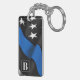Thin Blue Line Keychain - American flag in Police Flag colors, distressed design . Personalize with police officers name, family name or department . This personalized police keychain is perfect for police and law enforcement departments, families and all those who support them . COPYRIGHT © 2020 Judy Burrows, Black Dog Art - All Rights Reserved. Thin Blue Line Personalized Police Keychain