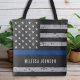 Thin Blue Line Personalized US Flag Police Officer Tote Bag