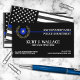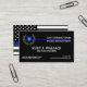 Professional, classy and custom design police officer business cards featuring the black and white police flag on the reverse, and thin blue line on the front. Replace the template logo with your department logo, and edit all the text fields to personalize the card.