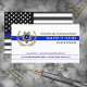 Professional, white background classy and custom design police officer business cards featuring the black and white police flag on the reverse, and a classy badge/laurel wreath and thin blue line on the front. Leave the badge or personalize by replacing with your police department's logo.